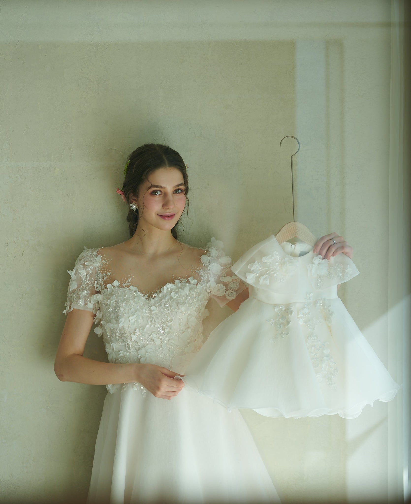 親子ドレスの、娘側のドレスになります。ママのドレス同様、こちらも準備中になります。レンタル開始時期は、来年1月頃を予定してます。